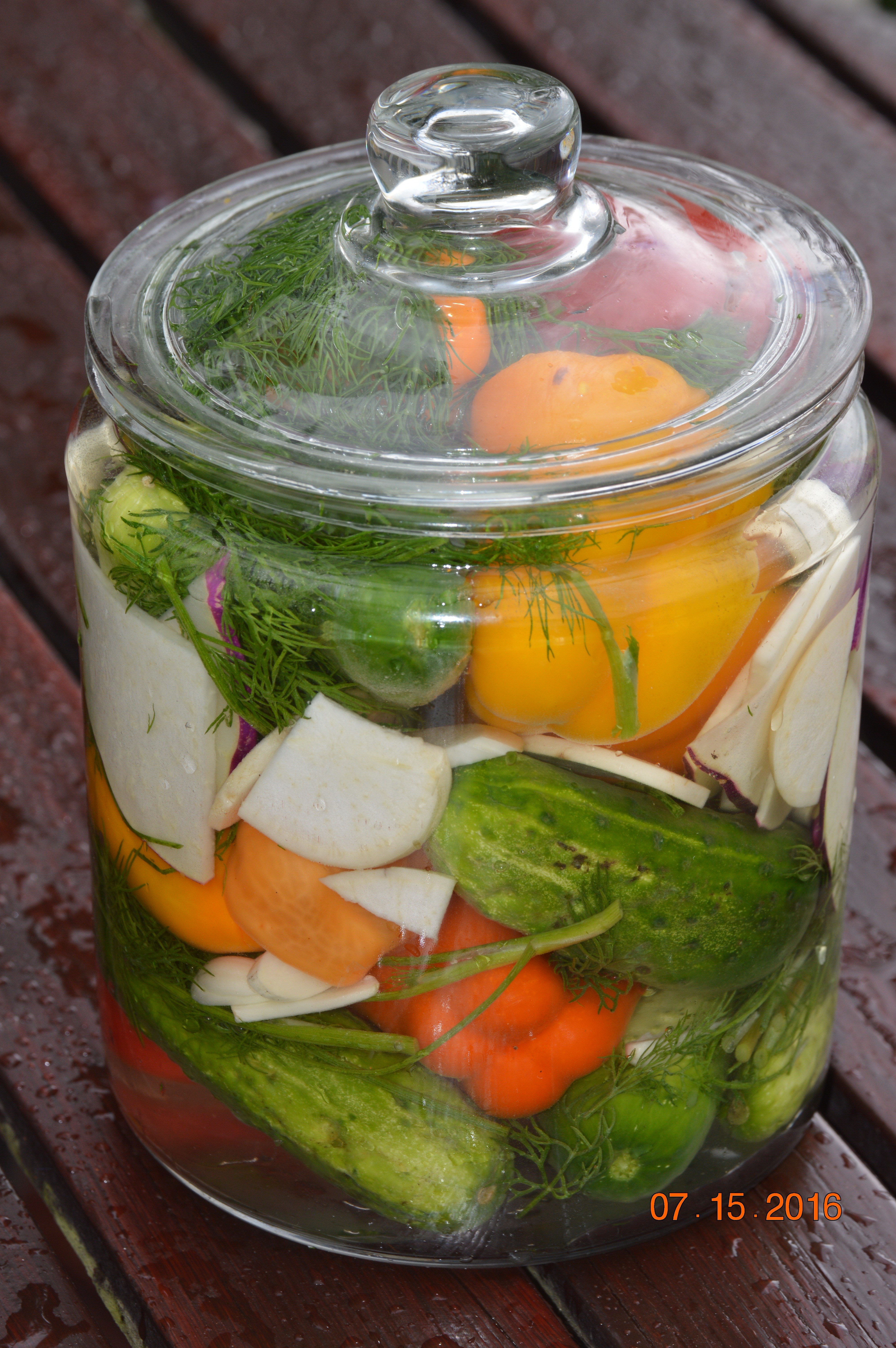 Next, a catch-all pickle I made a couple of weeks ago. They’re ready to eat now, and the kohlrabi were a nice surprise! They make very good pickles.